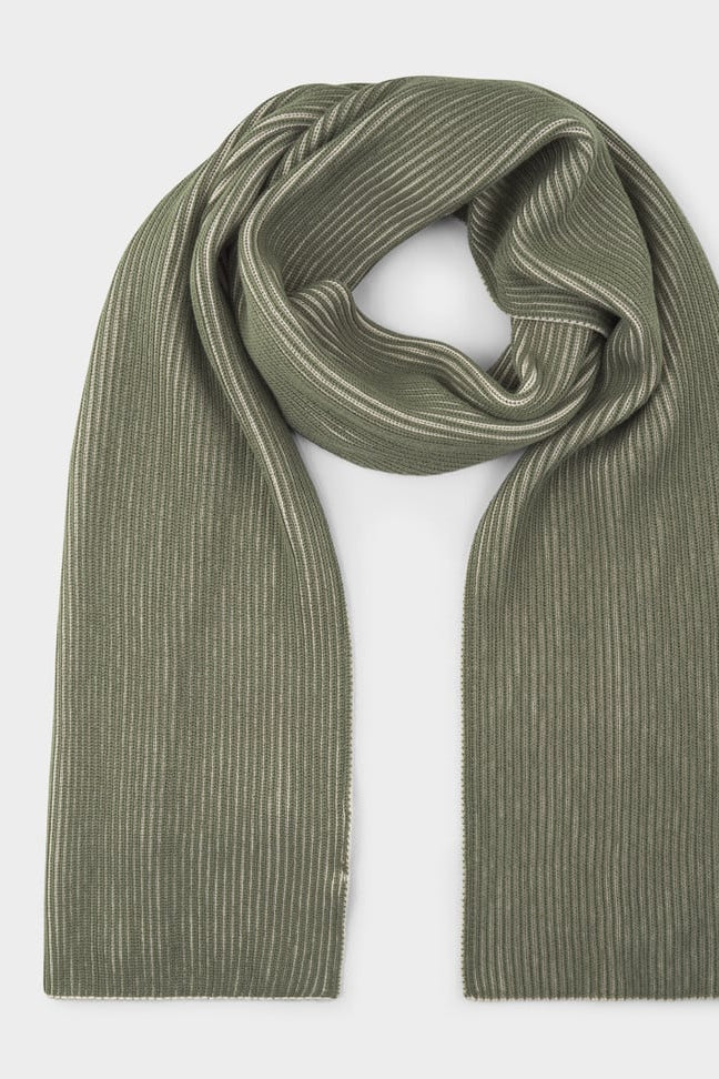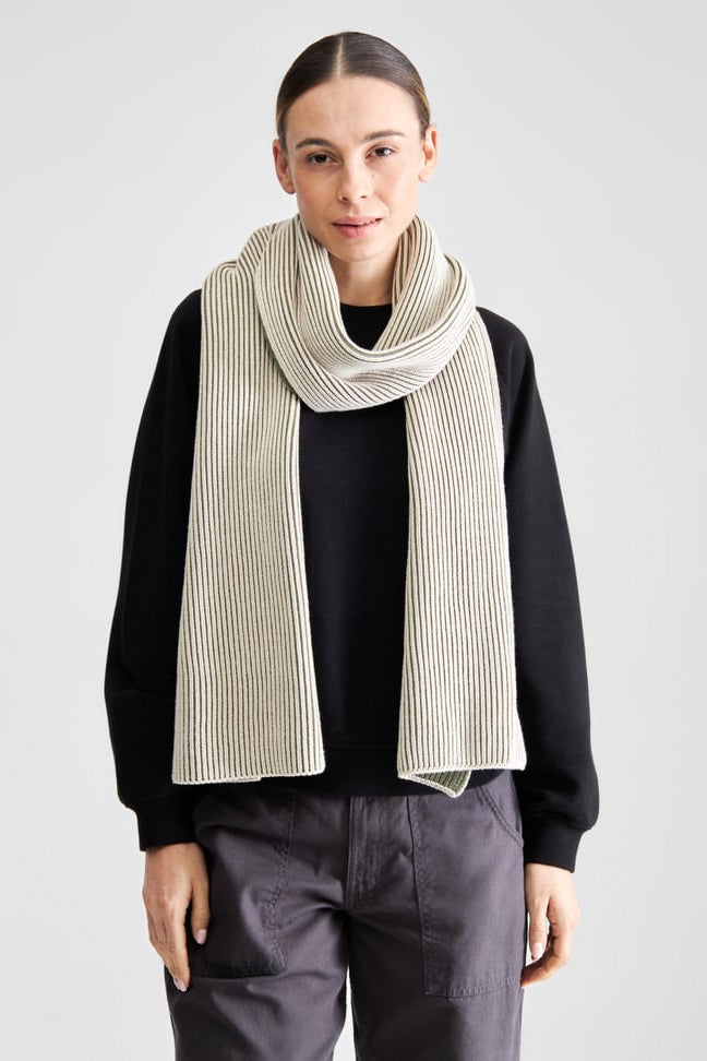 DEDICATED Norrfors Scarf • Brioche Oat White/Leaf Green