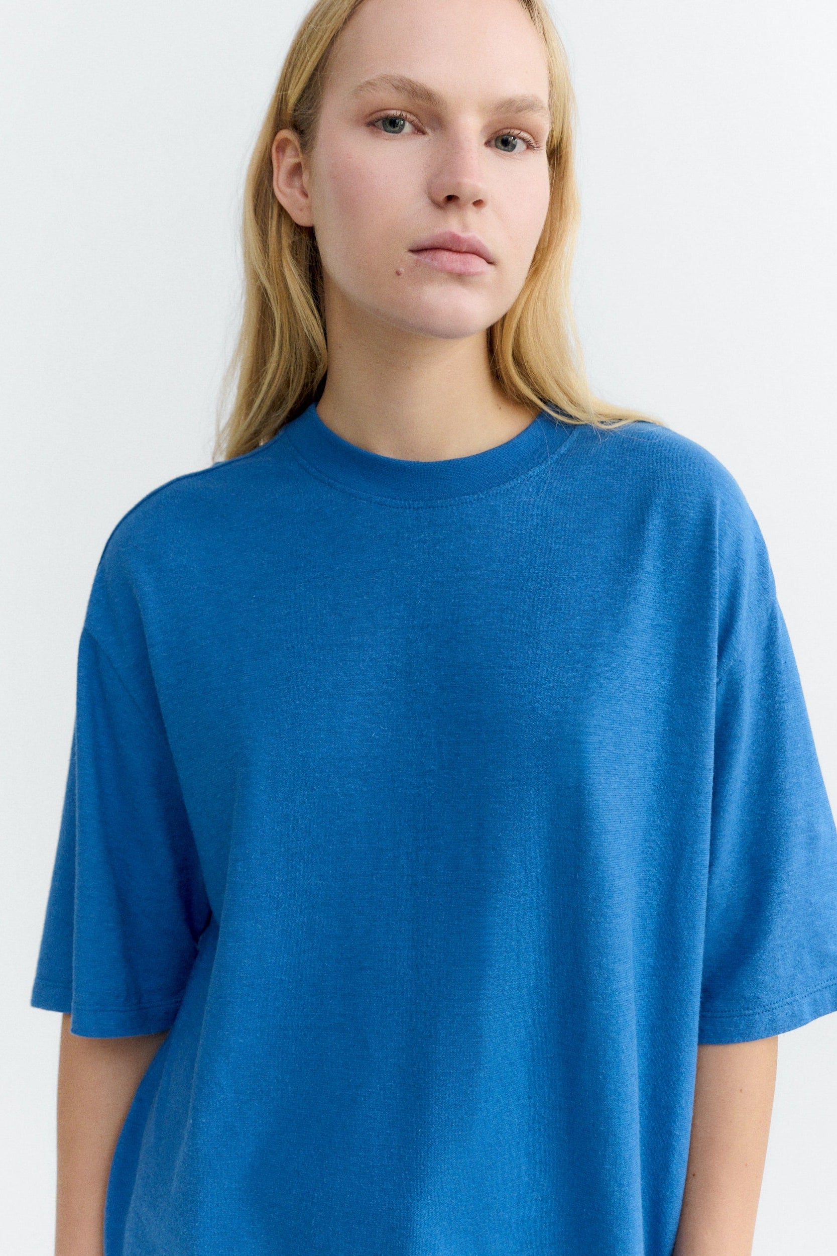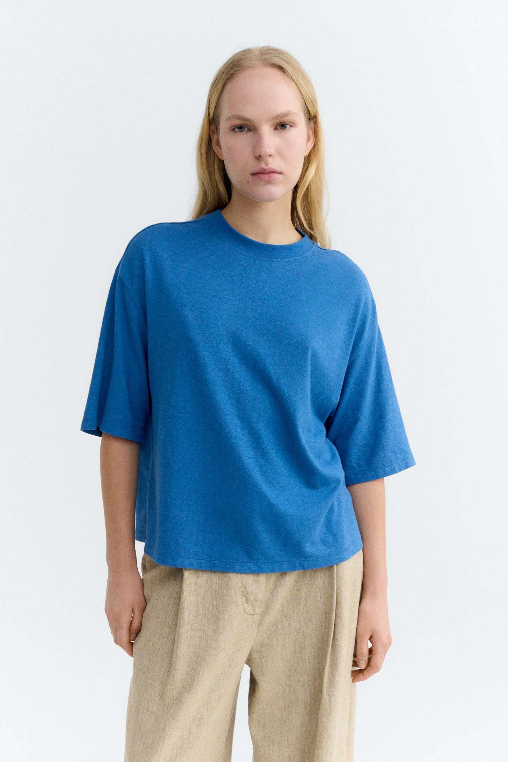 THINKING MU Lena Hemp T-Shirt • Light Cobalt