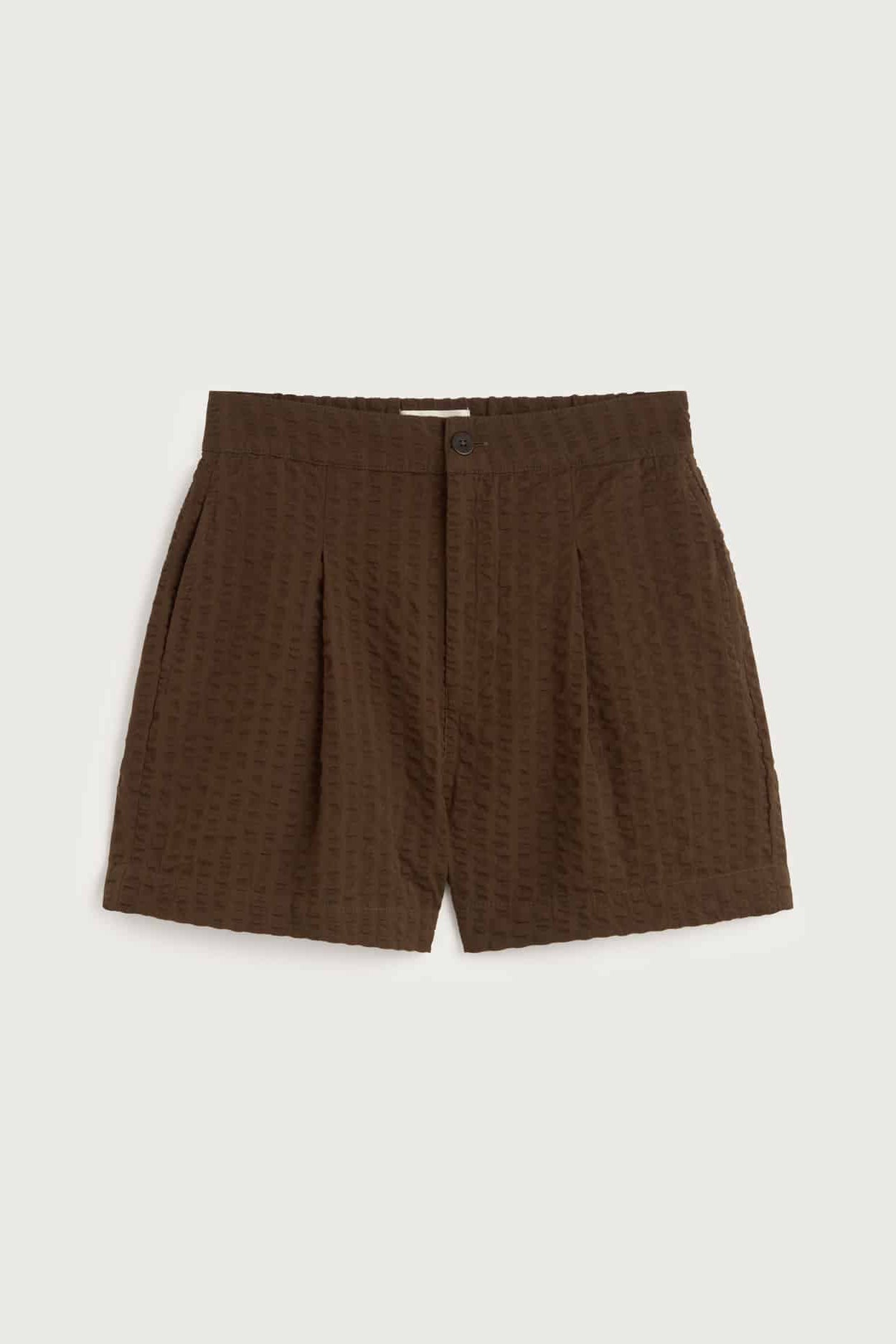 THINKING MU Narciso Seersucker Shorts • Wood
